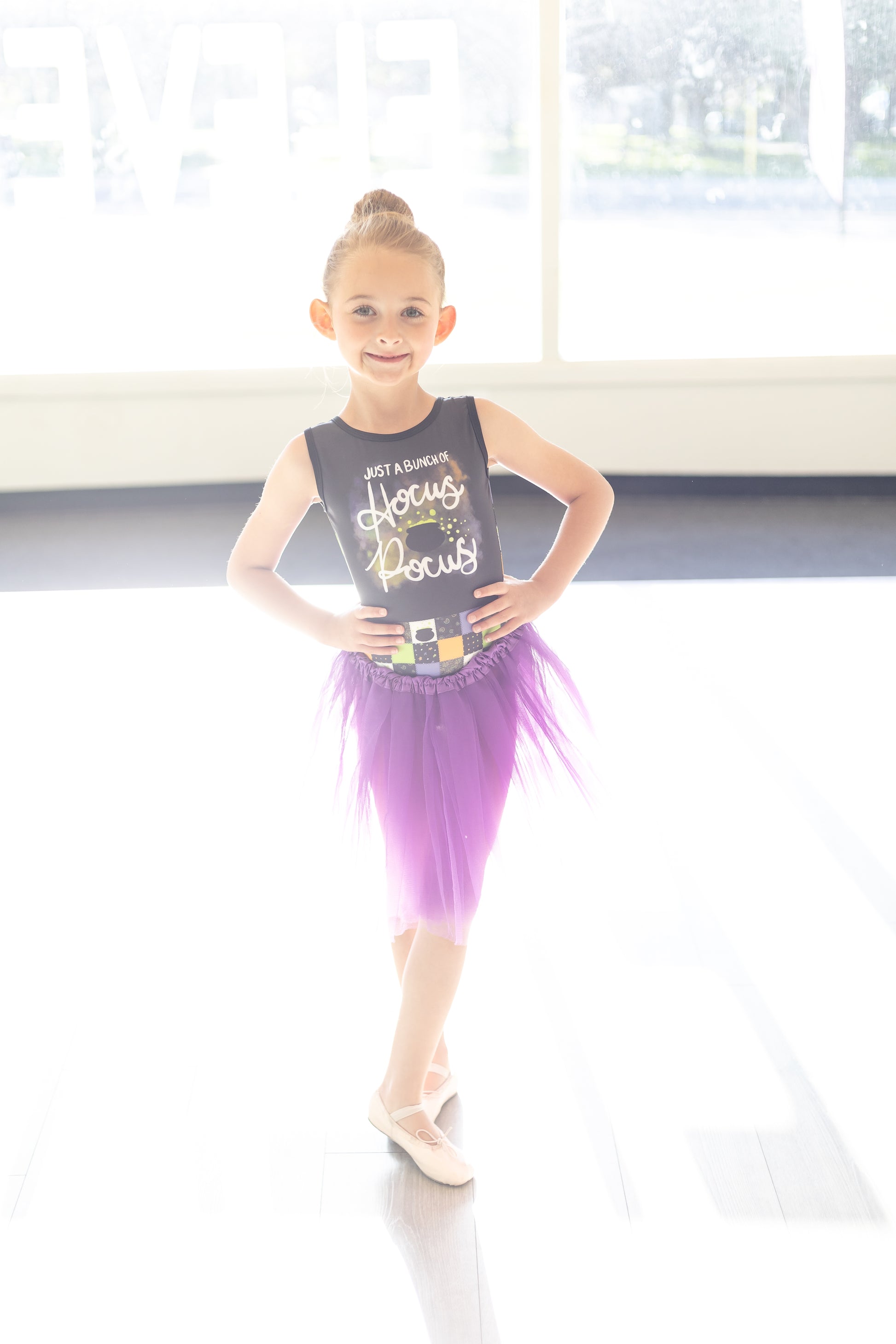 Cast a spell in the S,E & Me Hocus Pocus-inspired leotard that’s full of spooky charm! Be witchily fabulous in this one-of-a-kind, spook-tacular design, perfect for dance and gymnastics. With its enchanting details and a comfortable, flexible fit, this leo will have you flying through routines with ease. Whether you're channeling your inner Sanderson sister for Halloween or simply love a touch of magic, this leotard is a must-have for your collection!